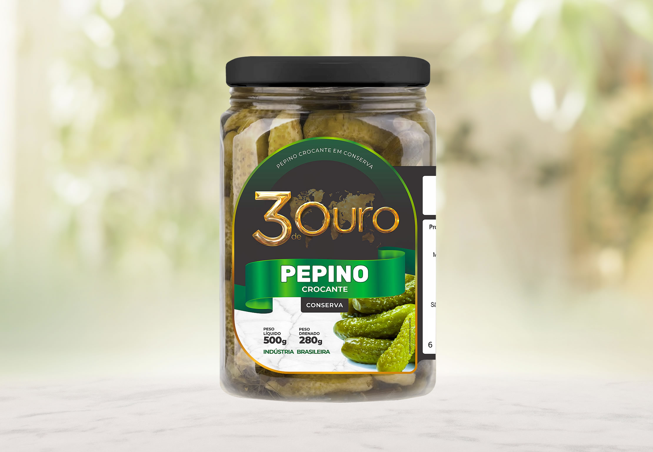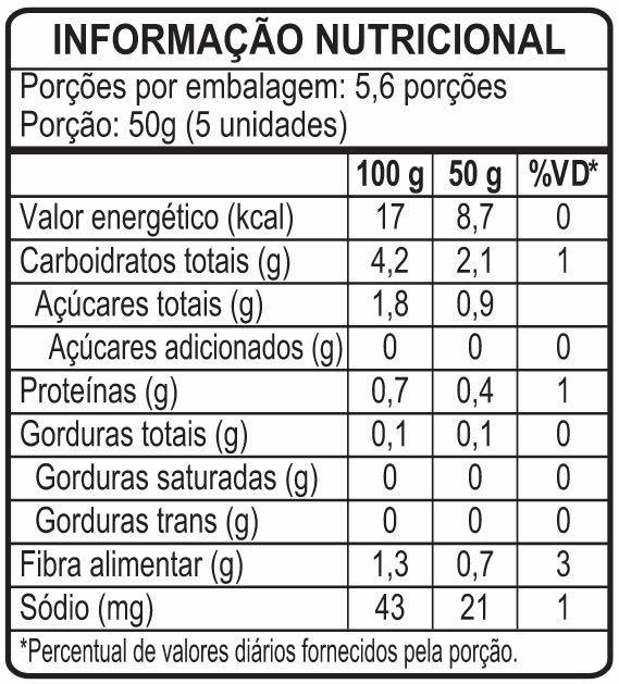 PRODUTOS / PEPINO CROCANTE EM CONSERVA INFORMAÇÕES Ingredientes: Pepino, água, sal, vinagre, açucar, cebola, louro e pimenta em grão. Peso Líquido: 500 g Após aberto conservar sob refrigeração entre 2ºC e 7ºC dentro do líquido de cobertura e consumir em até 5 dias.
